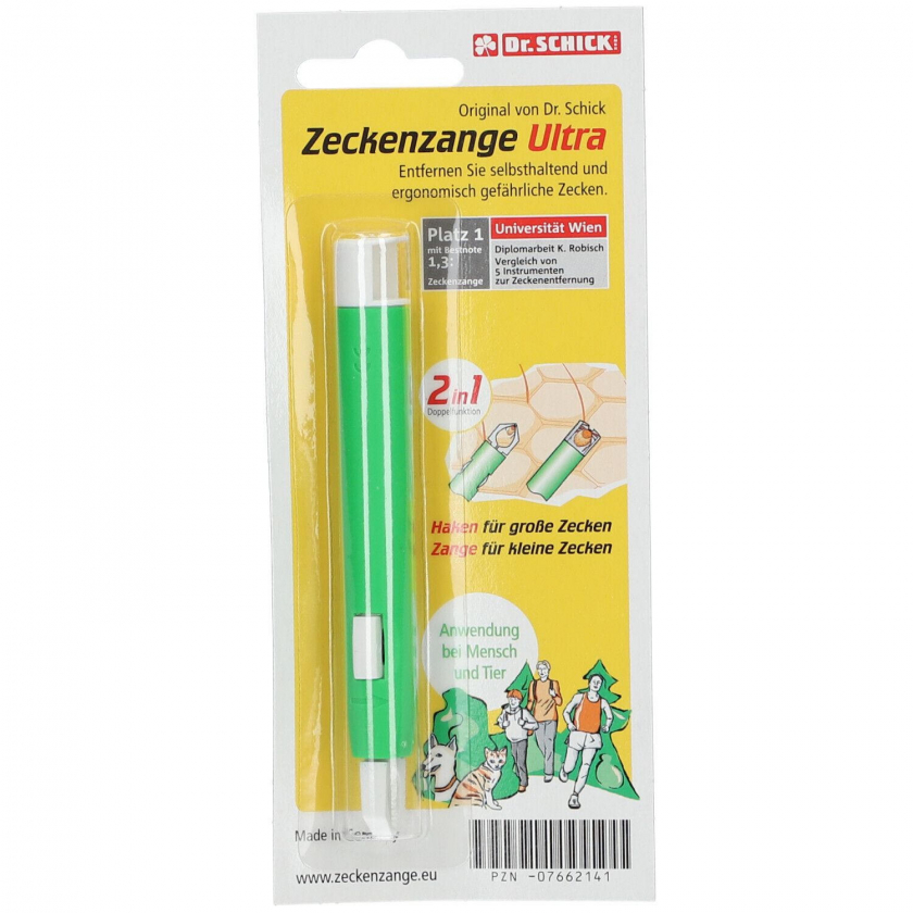 Ультра-пинцет для удаления клещей Dr. Schick's Zeckenzange Ultra - профессиональный медицинский инструмент для безопасного и эффективного удаления клещей у людей и животных. Простая и легкая в использовании конструкция с запатентованной технологией предотвращает отрыв головки клеща и снижает риск инфекции.