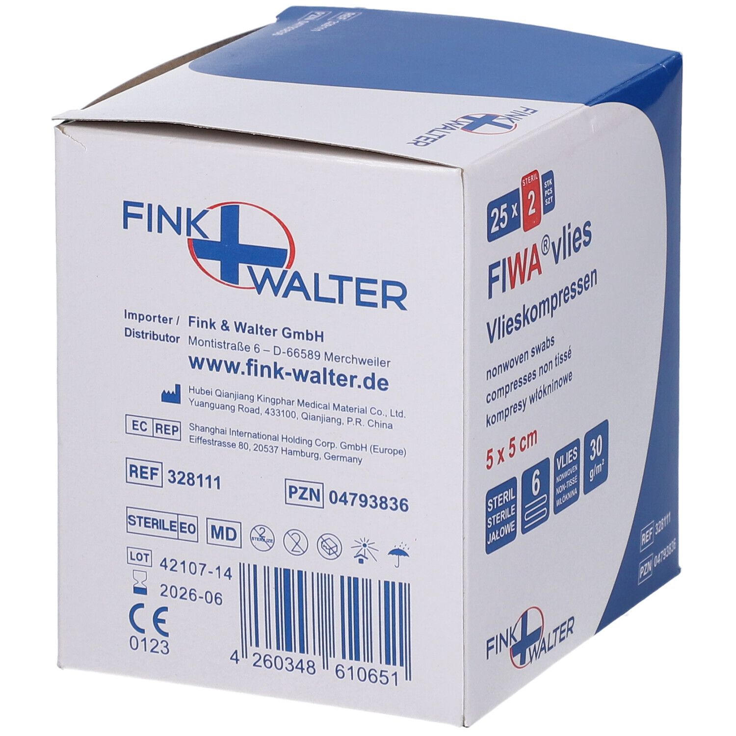 Стерильные нетканые компрессы 5x5 см для обработки ран. Изготовлены из 70% целлюлозной ваты и 30% полиэстера, обладают высокой впитывающей способностью, мягкие и воздухопроницаемые. Подходят для первичной обработки загрязненных, инфицированных и мокнущих ран, а также для небольших хирургических процедур.