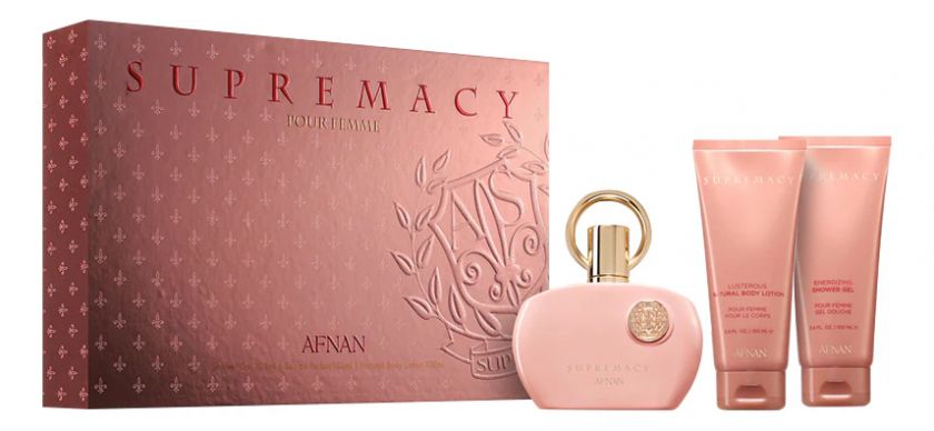 В очень женственном флаконе матового розового оттенка в 2015 году вышел в продажу Afnan Supremacy Pink Pour Femme. Это настоящее цветочное чудо, магия волшебства и очарования из ОАЭ. Золотистые детали и буквы названия придают легкий шик оформлению, такой ненавязчивый и деликатный. Цветочно-древесная композиция посвящена царственной розе, окруженной свежестью прохладных водных нот, мускусной чувственностью и теплым уютом древесных аккордов.