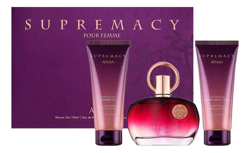 Supremacy Pour Femme Purple – очаровательный и манящий, как запретный плод, женский фруктово-цитрусовый парфюм, выпущенный под маркой известного арабского парфюмерного дома Afnan. Розовый флакончик с золотистым колечком и в самом деле напоминает искусительное спелое яблоко.