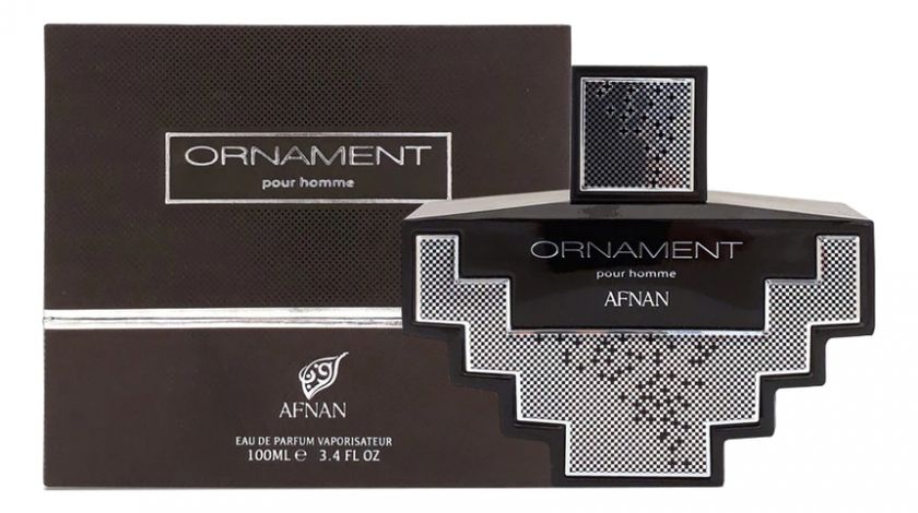 Afnan Ornament Pour Homme – мужской, сдержанный и яркий, магический и огненный, аромат, выпущенный в продажу известным брендом из ОАЭ в 2014 году. Необычный, выполненный в геометрическом направлении, флакон, вполне соответствует названию.