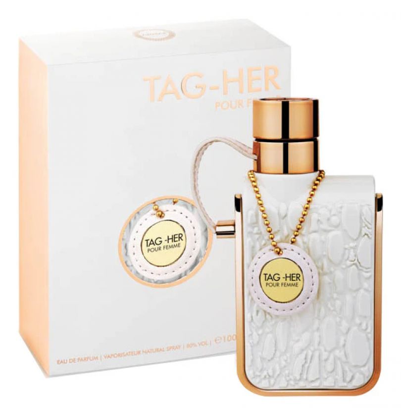 Модный бренд Armaf выпустил парфюмерный дуэт Armaf Tag в 2011 году. Женская композиция относится к восточным цветочным. Элегантный и обаятельный аромат символизирует завуалированную чувственность, ненавязчивое кокетство, сдержанную сексуальность.