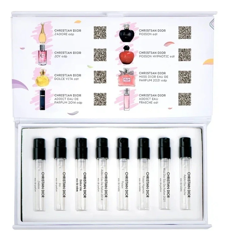 Набор из восьми пробников «Топ ароматов Christian Dior lux для нее» позволяет окунуться в волшебный мир роскошных женских ароматов бренда. С ним вы имеете возможность поэкспериментировать с собственными образами, а также подобрать аромат, знакомство с которым захочется продлить и после того, как закончится его пробник.