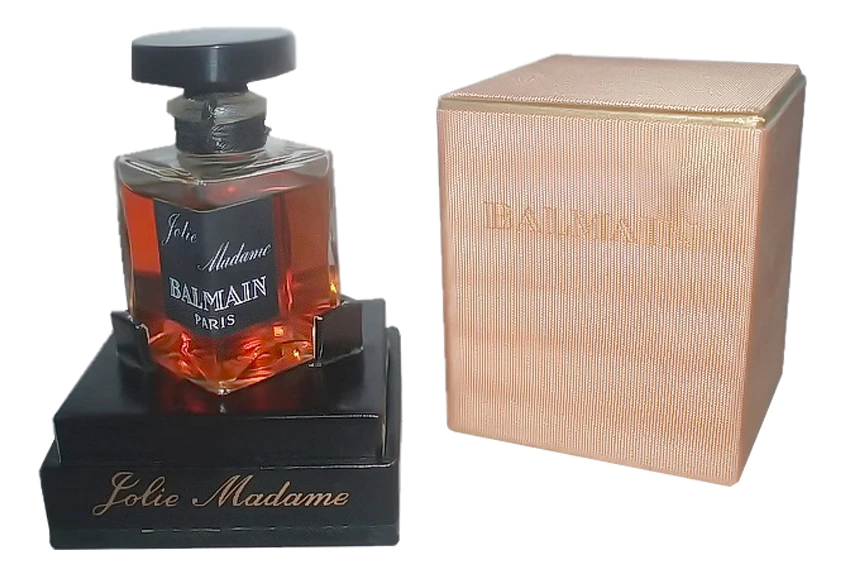 Фужерный аромат Balmain Jolie Madame с зелеными, ориентальными и древесными нотками. Винтажный парфюм создан еще в 1953 году француженкой Жермен Селье. Это первая женщина парфюмер, ставшая на один уровень с мужчинами-парфюмерами. Это была неординарная, стройная, высокая женщина с прекрасным вкусом и своенравным характером. Цветочный парфюм Balmain Jolie Madame (Бальмен. Мадам Джоли), как и Balmain Ivoire de Balmain, заслуживает звание утонченной классики парфюмерного искусства. Жермен Селье создавала ароматы, словно писала картину, словно выражая абстрактное искусство. Парфюмы получались непредсказуемые, авангардные. Аромат с ноткой сладкой, пудровой фиалки стал успешным. Для элегантной, женственной и энергичной женщины, с которой опасно шутить. Верхние нотки: гардения, артемизия, нероли, кориандр, бергамот. Корень ириса, нарцисс, тубероза, жасмин, роза – сердечные ноты. Ветивер, дубовый мох, циветта, кокос, мускус, кожа, пачули – базовые ноты.