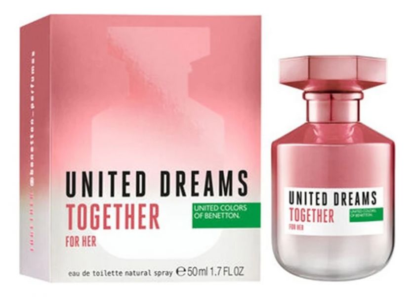 United Dreams Together For Her — яркий, сочный, солнечный и жизнерадостный женский цветочно-фруктовый аромат, выпущенный в 2019 году итальянским модным домом Benetton в рамках ароматического дуэта для нее и для него United Dreams Together. Заключенный в розовый флакон, аромат дарит настроение лета, солнца, запахи цветов, фруктов и сладостей, словно приглашая окунуться в волшебство отдыха на тропическом острове.