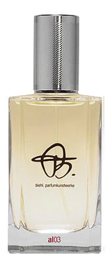 Biehl Parfumkunstwerke Al 03 («Бьель Парфюмкунцверке АЛ 03»). Этот впечатляющий универсальный аромат был выпущен в 2007 году парфюмерным брендом Biehl Parfumkunstwerke. Автором композиции стал парфюмер, бывший химик - Arturetto Landi.