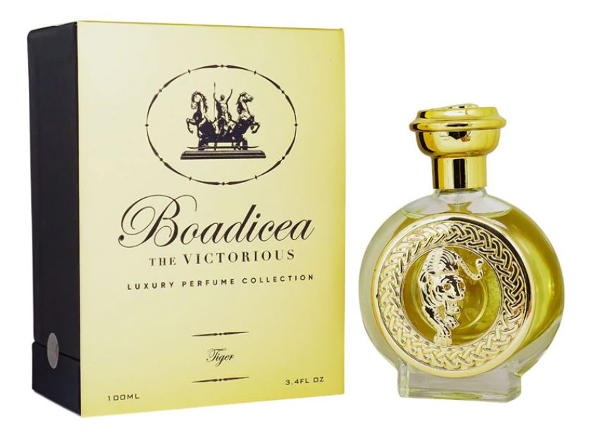 Boadicea The Victorious Tiger — селективная парфюмерная вода с древесно-пряным ароматом для женщин и мужчин, представленная в 2021 году известным парфюмерным брендом Boadicea The Victorious из Великобритании. Смелый и яркий унисекс-аромат Tiger создает сияющий силуэт, яркий и мощный эффект присутствия, который пронизан знойной решимостью и очарованием, вдохновлен образом царя зверей — тигра, коварного, грациозного и страстного.