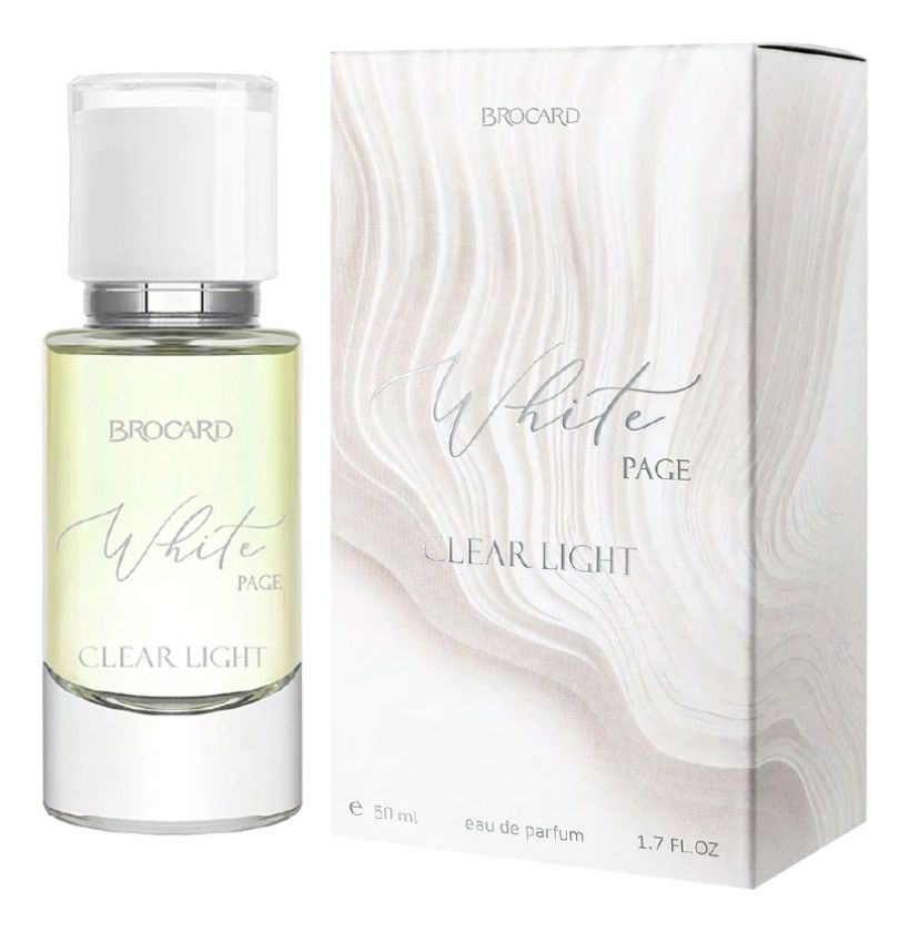 Brocard White Page Clear Light (Ясный свет) — цветочно-пудровый женский парфюм, выпущенный в 2024 году российским парфюмерным брендом Brocard в рамках коллекции White Page. Аромат легкости и свободы. В воздухе звенит хрусталь, все вокруг становится ясным и прозрачным, словно глоток чистейшей воды из горного источника. Свежий зеленый аккорд наполнен энергией и бесконечной нежностью эдельвейсов и ландышей. Аромат — символ изящества и абсолютной женственности.