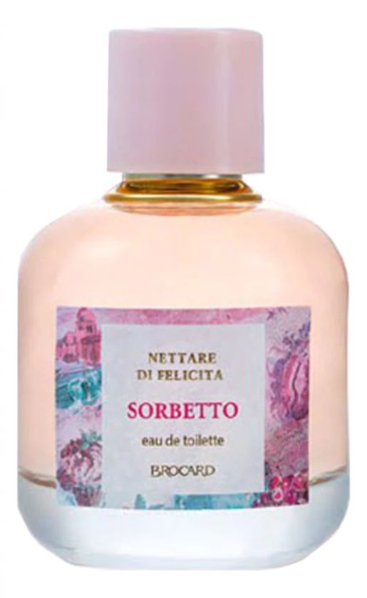 В созданной парфюмером Патрис Мартеном (Patrice Martin) ароматической композиции Sorbetto верхний аккорд дарит прохладу ягодного сорбета, запах медовой дыни, цитрусовые ноты солнечного красного апельсина и терпковатую сладость черной смородины. Искрящаяся фруктовая волна первых нот Sorbetto освежает и дарит прохладу, а египетский жасмин, тубероза и цветок тиаре насыщают композицию чувственной сладостью. В шлейфе Brocard Nettare Di Felicita Sorbetto — облако нежности из шелковистого мускуса и утонченной ванили.