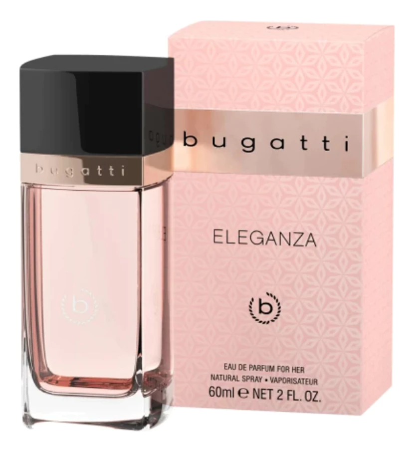 Bugatti Eleganza — легкий, волнующий и просто очаровательный женский цветочно-фруктовый аромат, выпущенный немецким модным домом Bugatti. Ароматическая композиция вдохновлена образом молодой прекрасной девушки. Прогулка по площади с естественной грацией, быстрый взгляд через плечо, улыбка, от которой перехватывает дыхание. Eleganza означает красоту, в произношении это слово уже звучит естественным изяществом. Это символ женственности, вневременного чувства стиля и вкуса.