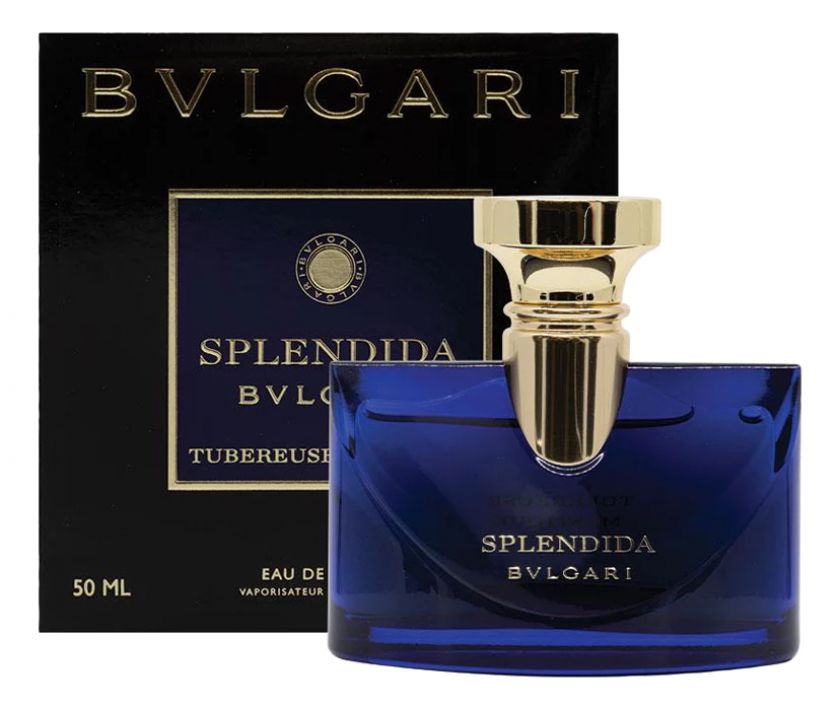 Аромат Bvlgari Tubereuse Mystique заключен в элегантный стеклянный темно-синий флакон, выполненный в фирменном стиле и украшенный золотистой крышечкой.