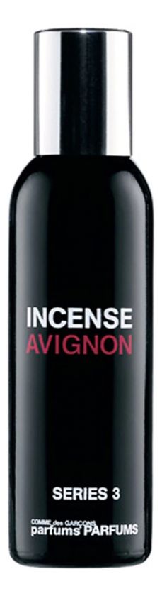 Парфюмерная композиция Comme des Garcons Series 3 Incense: Avignon («Коме де Гарсон. Серия 3 Благовония: Авигнон») получила свое название в честь южного Французского города, который в 14 веке находился под властью католической церкви. Аромат изящен, он воплотил в себя стилистику утонченных готических дворцов, благоухающих миррой и ладаном. Он восхищает и в то же время умиротворяет, словно вид старинный статуй и величественных реликвий.