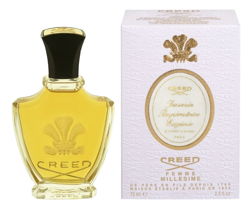 Неповторимый аромат Creed Jasmin Imperatrice Evgenie (духи Крид Жасмин Имератрица Евгения) очень утонченный. Создан он на основе формулы, которая выводилась еще в 1854 году для императрицы Евгении, которая была женой Наполеона III. Парфюм будет гармонично смотреться на женщинах аристократках, обладающих изысканными манерами. Аромат Jasmin Imperatrice Evgenie (Жасмин имератрицы Евгении) подходит зрелым женщинам, как и парфюм Creed Fleurs de Bulgarie. Женщина оценит этот утонченный аромат, который позволяет ощутить мир цветов с порхающими бабочками, где главенствует красота. Лучшие парфюмеры Creed собрали в аромате прекраснейшие цветы. Нотки итальянского жасмина, восточного сандала и сладкой ванили придают райскую атмосферу императорского двора. С парфюмом, который создает сказочный шлейф, вы ощутите себя настоящей королевой, сильной, но чуткой и ласковой.
