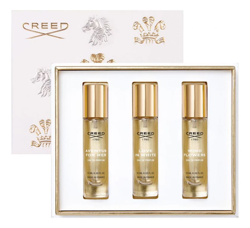Совершенствуйте искусство дарения подарков в этот праздничный сезон с подарочным набор ароматов Women's 3-Piece Discovery Set от нишевого парфмерного дома Creed. Созданный для исключительного обонятельного опыта, подарочный набор объемом 3x10 мл включает в себя фирменные женские ароматы дома: Aventus For Her, Wind Flowers и Love In White. Коробку с набором украшает фирменный узор Creed, вдохновленный 260-летней историей бренда.