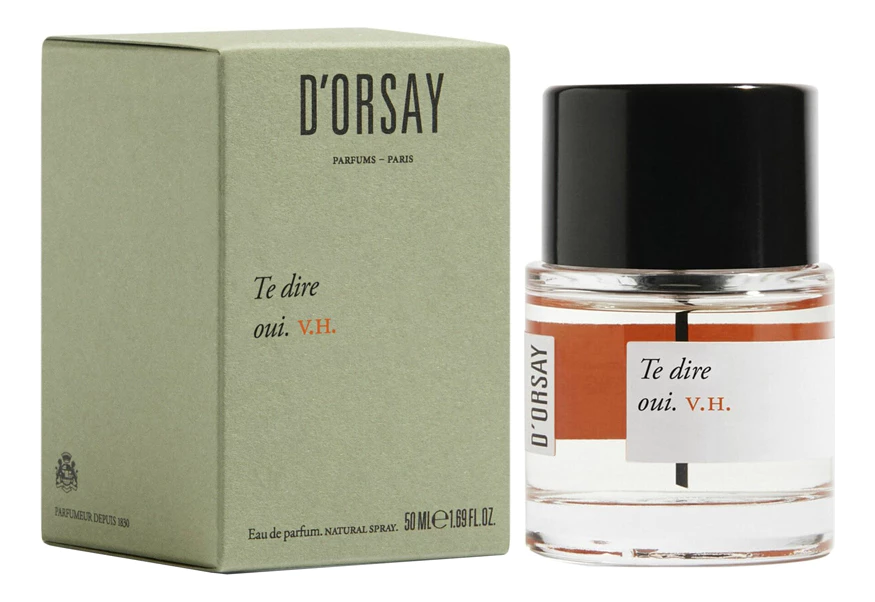 D'Orsay V.H. Te dire oui. — самобытный древесно-пряный унисекс-парфюм, выпущенный в 2022 году французским нишевым парфюмерным брендом D'Orsay. Аромат задуман Винсентом Рикордом как ритуал. Он напоминает о рисунках хной на коже, которые в Индии жених и невеста делают перед свадьбой. Пробуждающий безусловную любовь, аромат освещен золотым светом шафрана. Он отправляет в путешествие по экзотической стране и приглашает сказать «Да» другому человеку, себе, жизни и радости.