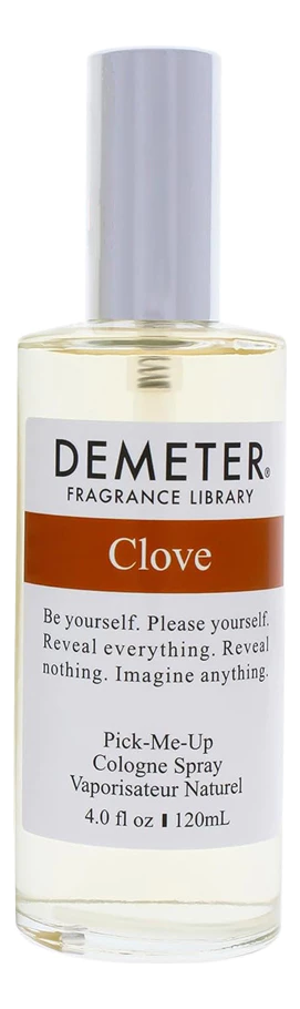 Demeter Fragrance Clove — тонкий, чуточку бархатистый ароматический унисекс парфюм с легкими гурманскими акцентами. Аромат выпущен американским парфюмерным брендом Demeter Fragrance в 2015 году и посвящен популярной восточной пряности – гвоздике. В качестве пряности используются высушенные нераскрывшиеся бутоны тропического гвоздичного дерева. Именно им присущ яркий специевый запах с камфорными полутонами и оригинальными цитрусовыми нотками. Гвоздику, как величайшую ценность, некогда везли в Европу из Индии и Цейлона.