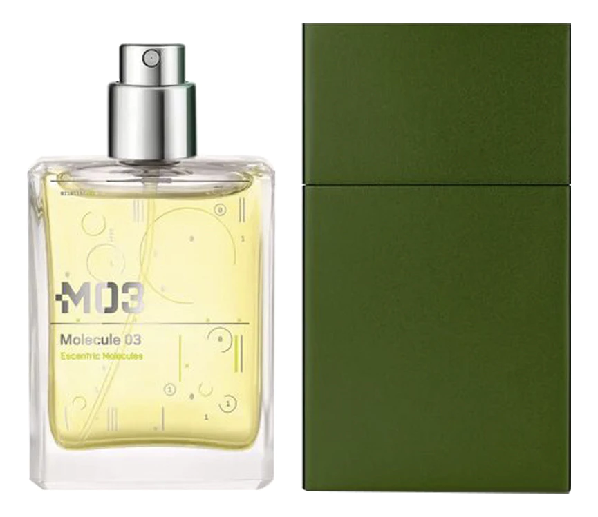 Известный бренд, создающий необычную, революционную парфюмерию Escentric Molecules представляет свой новый ароматный хит - Escentric Molecules Molecule 03 («Эксцентрик Молекула. Молекула 03»). Этот яркий, немного эпатажный аромат был создан в 2010 году талантливым и креативным парфюмером Гезой Шоеном, специально для современных, стильных мужчин и женщин. Парфюмерная композиция построена на основе ноты инденезийского ветивера, представленного здесь синтетической молекулой vetiveryle acetate, обладающей чистотой, глубиной и соблазном свежего ветивера.