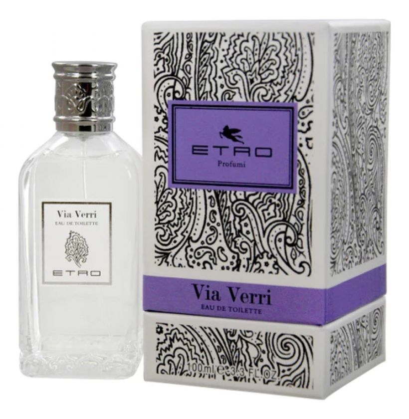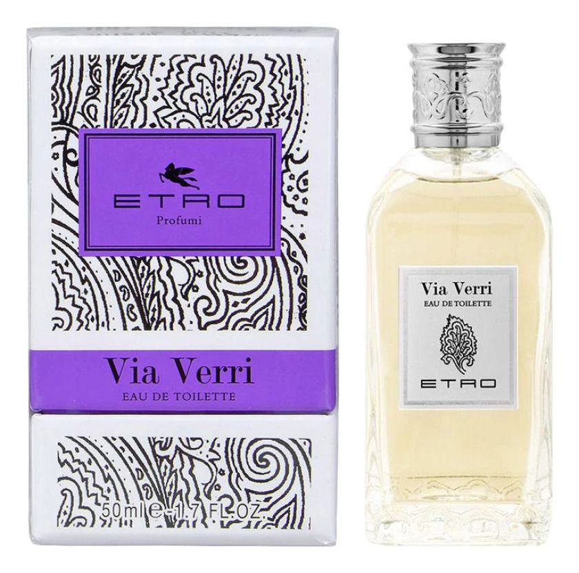 Etro Via Verri («Этро. Виа Верри») – аромат древесной фужерной группы. Его считают унисекс-композицией, запах признан и мужчинами, и женщинами. Пирамида ароматов такая: начальные ноты – лимон, гальбаниум, тмин, ноты сердца – роза, герань, цветы апельсинового дерева, конечные ноты – мускус, ветивер и ваниль.