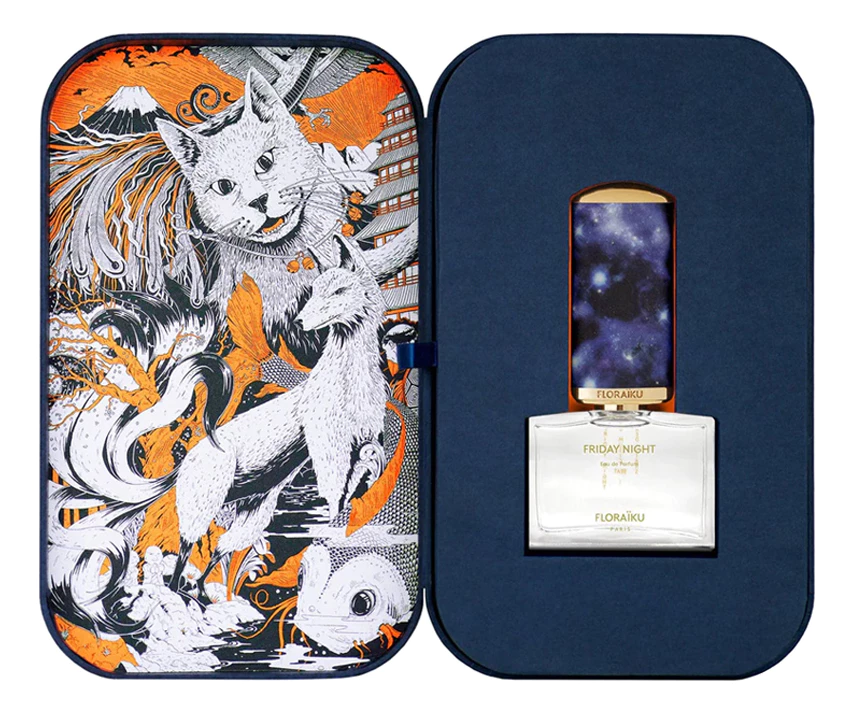 Friday Night — волнующий и обволакивающий восточный унисекс-парфюм с мягкими кожаными оттенками, выпущенный в 2020 году французским нишевым парфюмерным брендом Floraiku. Аромат заключен в характерный для бренда прямоугольный флакон с высокой расписной крышечкой. На этот раз флакон окрашен в белый цвет, а крышечка украшена принтом загадочного звездного неба.