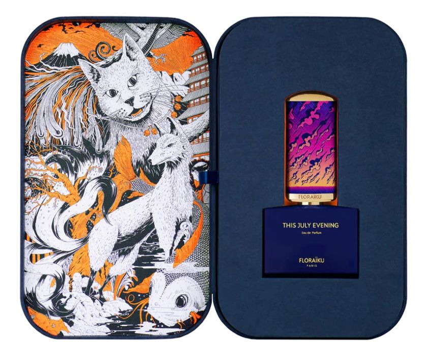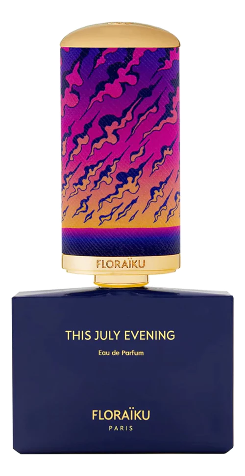 This July Evening — волнующий и утонченный восточно-цветочный унисекс-парфюм, выпущенный в 2020 году французским нишевым парфюмерным брендом Floraiku. Аромат заключен в характерный для бренда прямоугольный флакон с высокой расписной крышечкой. На этот раз флакон окрашен в темно-синий цвет, а крышечка украшена принтом закатного неба, окрашенного в красно-оранжевые тона.