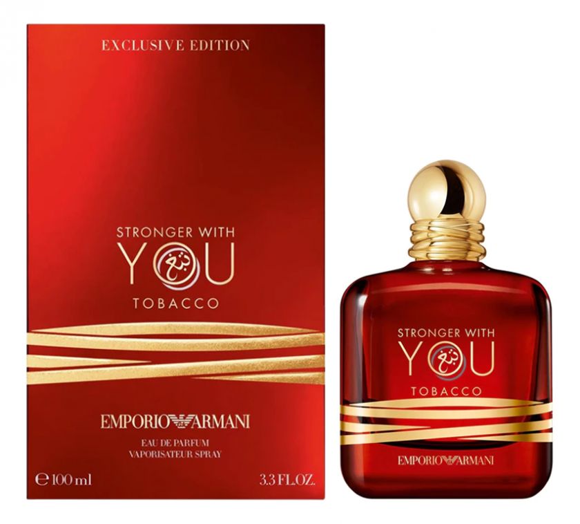 Giorgio Armani Emporio Armani Stronger With You Tobacco — пряный мужской аромат с тонкими амбровыми акцентами, выпущенный в 2024 году модным домом Giorgio Armani. Парфюм является фланкером аромата Stronger With You for Men 2017 года. Он переосмысливает оригинальную ольфакторную смесь, но на этот раз акцент делается на теплых табачных нотах, как и его предшественники на амбре и уде.
