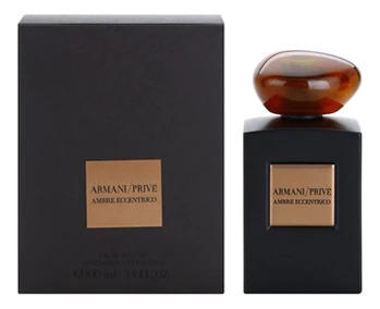 Armani Prive Ambre Eccentrico – изысканный, яркий и утонченный восточный парфюм для мужчин и женщин, выпущенный в 2015 году под маркой знаменитого итальянского модного дома Giorgio Armani. Аромат создан парфюмером Калике Беккером и одет в узнаваемый угольно-черный флакончик и золотистым колпачком – своеобразное воплощение утонченности и роскоши стиля Армани. Впрочем, и сам аромат своей роскошью и оригинальностью не уступает дизайну флакона, в который он упрятан. Он очень оригинально и стильно обыгрывает ставший классическим запах янтаря. В композиции его тонкий, искрящийся, аристократичный запах словно мерцает и переливается, медленно растворяя в себе шелковисто-пряный аромат пачули, медовые акценты спелой сливы, сладковато-дымный запах бобов тонка, бархатистую пряность корицы и дымно-фруктовые ноты сухофруктов, создавая почти завораживающее ароматическое звучание, выливающееся в длительный и очень красивый ароматический шлейф.