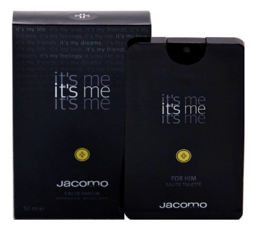 It's Me For Him Jacomo («Это я» для Него от Джакомо) - это аромат для мужчин. Выпущен в 2011 году. Аромат принадлежит к группе ароматов древесные цветочные мускусные. Он создан для современных, уверенных в себе мужчин. Jacomo позиционирует It's Me For Him как симбиоз высоких современных технологий и парфюмерии. Флакон в который заключен аромат Jacomo It`s Me напоминает культовый мобильный телефон iPhone.