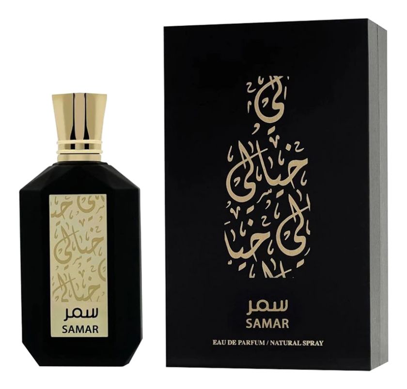 Khayali Samar — необычный восточно-древесный унисекс-парфюм, выпущенный в 2019 году арабским парфюмерным брендом Khayali. Это аромат, который прячется, как полумесяц, за облаками, заменяя тишину разговоров ощущениями. Волшебное путешествие в мир тайн, обращающее тишину в ощущения.