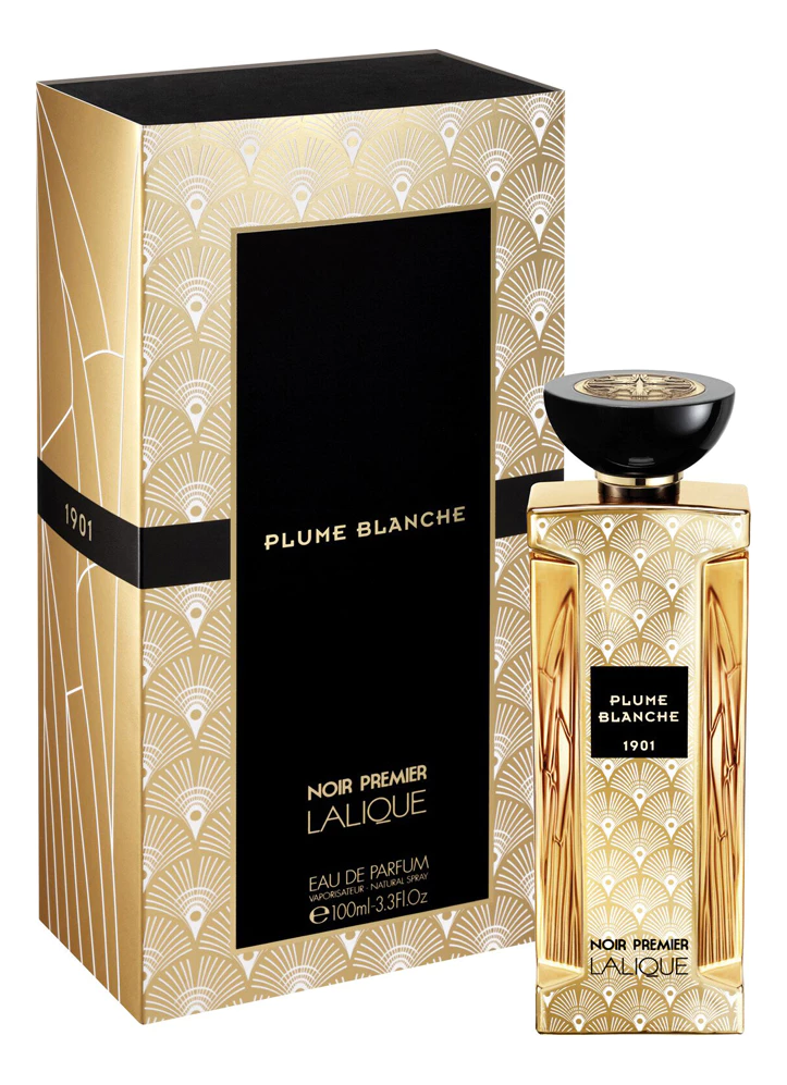 Lalique Plume Blanche 1901 — цветочно-пряный с изящными древесно-мускусными полутонами унисекс-парфюм, выпущенный в 2020 году французским ювелирным домом Lalique. Созданная парфюмером Карин Дюбрей Серени ароматическая композиция вдохновлена прекрасным оперением белого павлина. Сверкающий, как драгоценный камень, лёгкий, как пёрышко, мягкий, как тёплый ветерок, Plume Blanche превращает изысканную элегантность хвоста белого павлина в прекрасный парфюм.