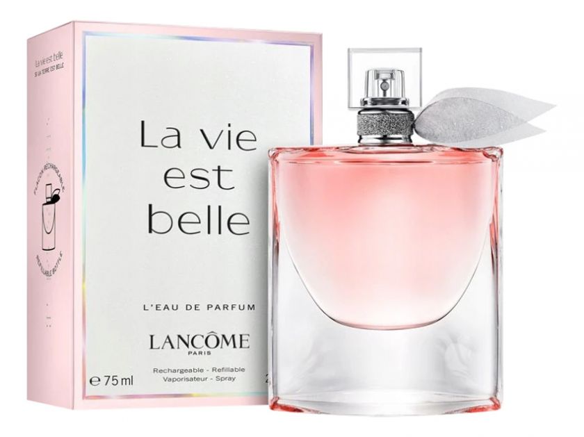 Lancome La Vie Est Belle («Ланком. Жизнь прекрасна»). Этот изысканный женский парфюм стал долгожданной новинкой 2012 года от модного дома Lancome. Новый цветочно-фруктовый аромат представлен в прозрачном флаконе из стекла с толстым высоким дном. Верх бутылочки увенчан прозрачным маленьким колпачком, на горлышке повязана газовая ленточка.