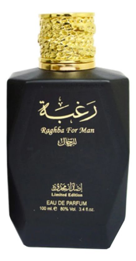 Lattafa Raghba For Man — мужской восточный аромат, выпущенный парфюмерным домом Lattafa Perfumes из Арабский Эмиратов в рамках коллекции «Raghba». Дымчато-серый флакон парфюма, словно сделанный из полудрагоценного камня, выполнен в виде куба со сглаженными углами и украшен фактурной золотистой крышечкой. Сам аромат изысканно сдержан и по-восточному красив.