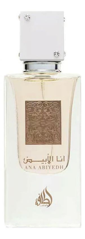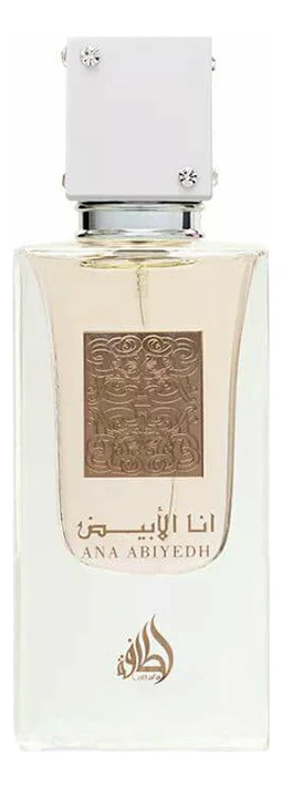 Ana Abiyedh — мягкий, обволакивающий и магнетический восточный унисекс-парфюм, выпущенный арабским парфюмерным брендом Lattafa. Сильный и независимый аромат придется по душе ярким, самодостаточным личностям, точно знающим, что они хотят от жизни и умеющим достигать поставленные цели. Простой по форме прямоугольный флакон украшен крышечкой со стразами, подчеркивающей сдержанную роскошь заключенного внутри парфюма.