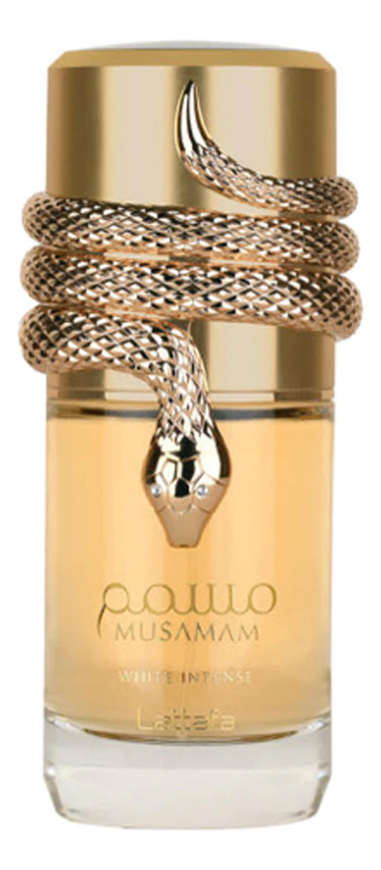 Lattafa Musamam White Intense — безупречный по своей ароматической текстуре, элегантный и стильный мускусный унисекс-парфюм с освежающими цитрусовыми оттенками, выпущенный в 2023 году арабским парфюмерным брендом Lattafa. Аромат упрятан в роскошный флакон, словно обвитый змеей, и помещен в футляр, имитирующий змеиную кожу.