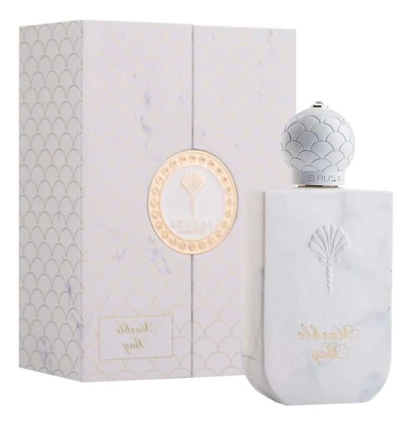 Спокойный, таинственный и загадочный цветочный древесно-мускусный аромат унисекс с ванильными и фруктовыми акцентами Lazure Perfumes Marble Bay выпущен домом парфюмерии из Объединённых Арабских Эмиратов Lazure Perfumes в 2023 году. Умиротворяющая, элегантная и нежная композиция Marble Bay посвящена прекрасному мраморному пляжу побережья острова Тасос, где по легенде Афродита благословила прибрежные бризы.