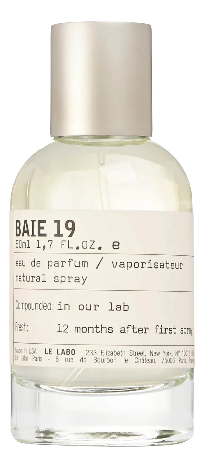 Baie 19 — селективная парфюмерная вода с древесным ароматом для женщин и мужчин, представленная в2019 году французским парфюмерным брендом Le Labo. Приятный запах с землистым оттенком — ольфакторное отображение чудесного ощущения невероятной свежести долгожданного дождя, после долгого периода жаркой, сухой погоды.
