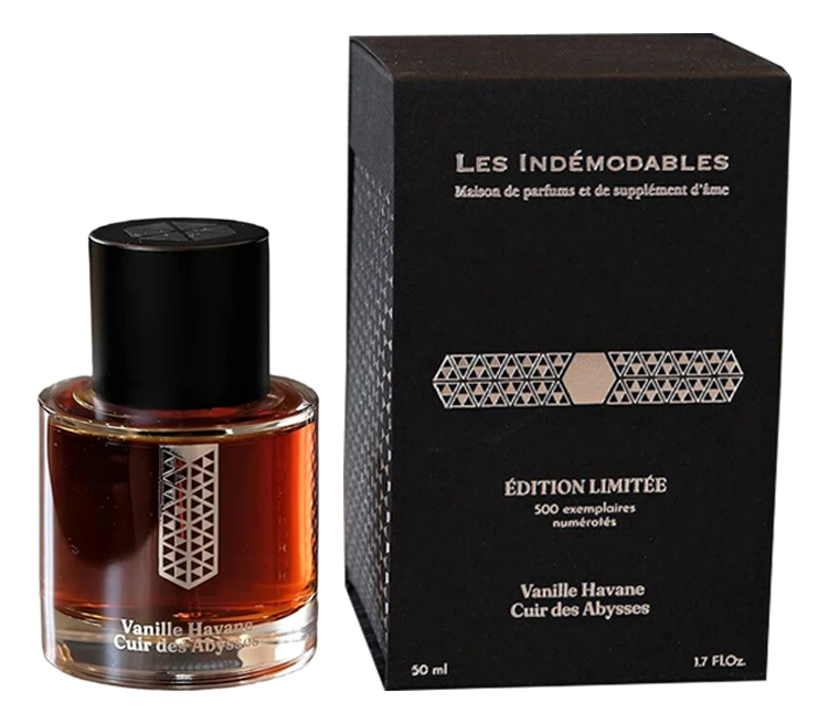 Les Indemodables Vanille Havane Cuir Des Abysses — цветочно-древесный унисекс-аромат, выпущенный в 2025 году нишевым парфюмерным брендом Les Indemodables. В композиции отразился шёпот кубинской ночи. Это путешествие в бездну, где сладость ванили встречается с дикой глубиной кожи, а цветочная нежность жасмина тонет в тёмных водах какао. Здесь нет места свету — только мрак и опьянение, где каждая нота манит глубже, как сирена, поющая в тумане.