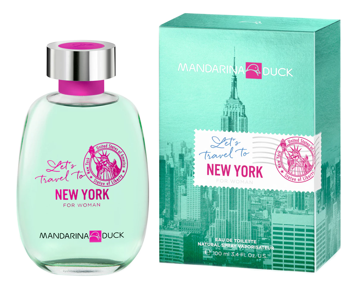Let`s Travel To New York For Woman – женская туалетная вода с цветочным древесно-мускусным ароматом, созданная в 2017 году парфюмером Jean – Pierre Mary для итальянского бренда Mandarina Duck. Жизнерадостный энергичный аромат предназначен для любительниц путешествий по миру, для тех кто приехал в Нью-Йорк и сразу же влюбился в веселую сумасшедшую атмосферу этого удивительного современного мегаполиса, который считается американским законодателем моды и поражает великолепием и разнообразием молодежных развлечений.