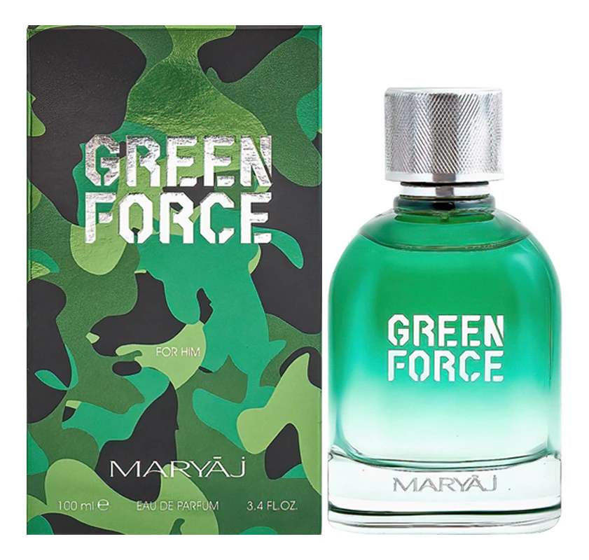 Maryaj Green Force — энергичный древесно-цитрусовый мужской аромат с пряными оттенками, выпущенный арабским парфюмерным брендом Maryaj. Это аромат первой зелени, пробивающейся сквозь холодную землю, и свежего ветра после грозы. Для мужчины, чья энергия — это энергия роста и уверенного покоя.