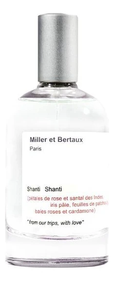 Miller et Bertaux Shanti Shanti («Миллер эт Бетро. Шанти Шанти») - это аромат для женщин. Выпущен в 2008 году. Парфюм принадлежит к группе ароматов цветочные. Найди гармонию в своем внутреннем мире с ароматом Shanti Shanti! Лепестки болгарской розы пробуждают твои чувства в этом искрящемся запахе! Мягкие ноты ириса сочетаются с теплыми примечаниями кардамона, пачули и индийского сандалового дерева.
