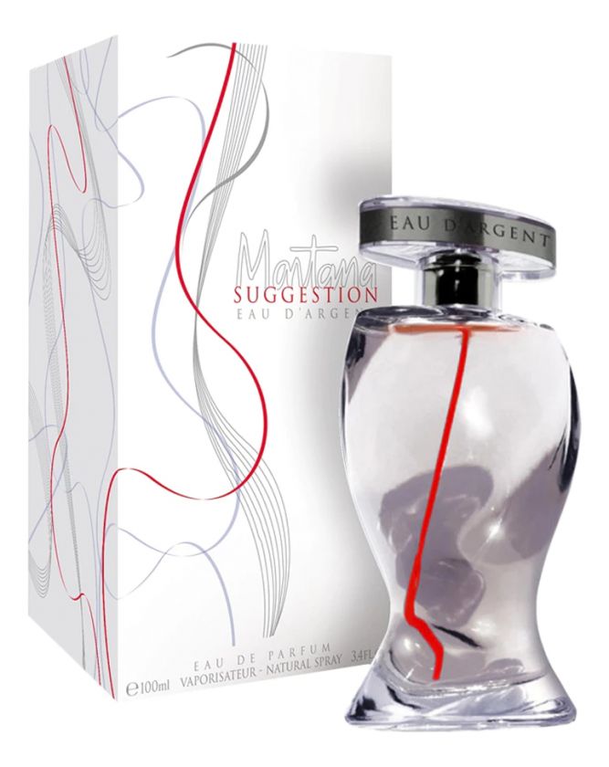 Montana Suggestion Eau D'Argent 2016 — парфюмерная вода класса люкс с фруктово-цветочным ароматом для женщин, выпущенная в 2016 году французским парфюмерным брендом Montana. Томный, волнующий и экзотический женский парфюм Suggestion Eau D'Argent (Серебро) 2016 Montana Suggestion Eau D'Argent 2016 — одна из трех композиций коллекции бренда, посвященной трем металлам — золоту, серебру и меди; это нежный и прозрачный аромат, который своим чистым свежим, искристым звучанием характеризует благородное Серебро.
