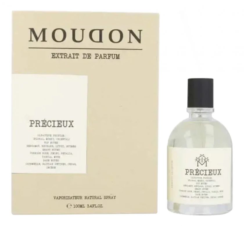 База парфюма Precieux от Moudon раскрывается элегантными древесными аккордами: дымный ветивер, кремовый кашмеран, мистический ладан и благородный кедр формируют прочный фундамент, на котором держится вся композиция.