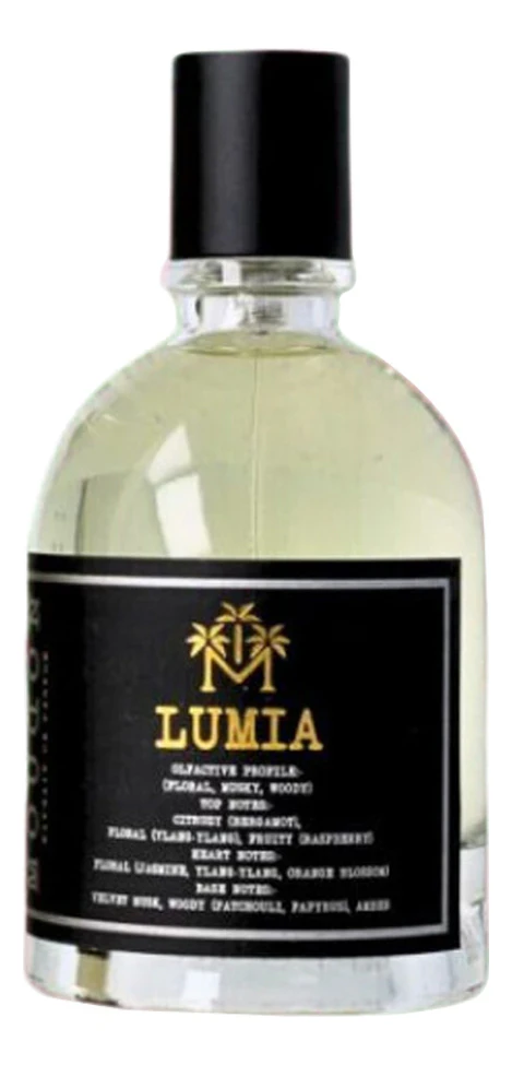 Унисекс-аромат Lumia, выпущенный домом Moudon в 2022 году, принадлежит к семейству древесно-цветочно-мускусных композиций. Он открывается неожиданным союзом экзотического иланг-иланга, сочной малины и искристого бергамота — подобно первым лучам восходящего солнца, освещающим тропический сад после ночного дождя.