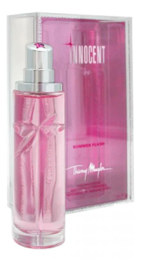 Mugler Angel Innocent Summer Flash — тонкий, волнующий и притягательный женский восточно-гурманский аромат, выпущенный в 2006 году французским брендом Mugler в рамках линейки Angel. Он обладает прохладным, воздушным характером и идеально подходит для женщин, смотрящих на мир широко открытыми глазами. Тем, кто умеет радоваться каждому новому дню, золотистым лучам солнца, тем, кто сам озаряет улыбкой всё вокруг, умеет дарить радость и любовь так же, как и получать. Женственность, мягкость и изящество звучания — вот чем покоряет этот парфюм.