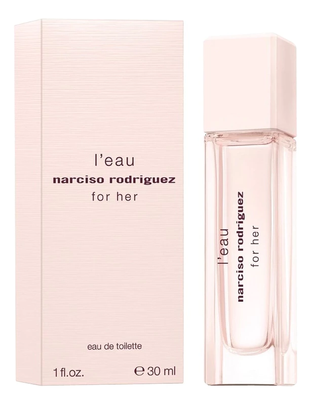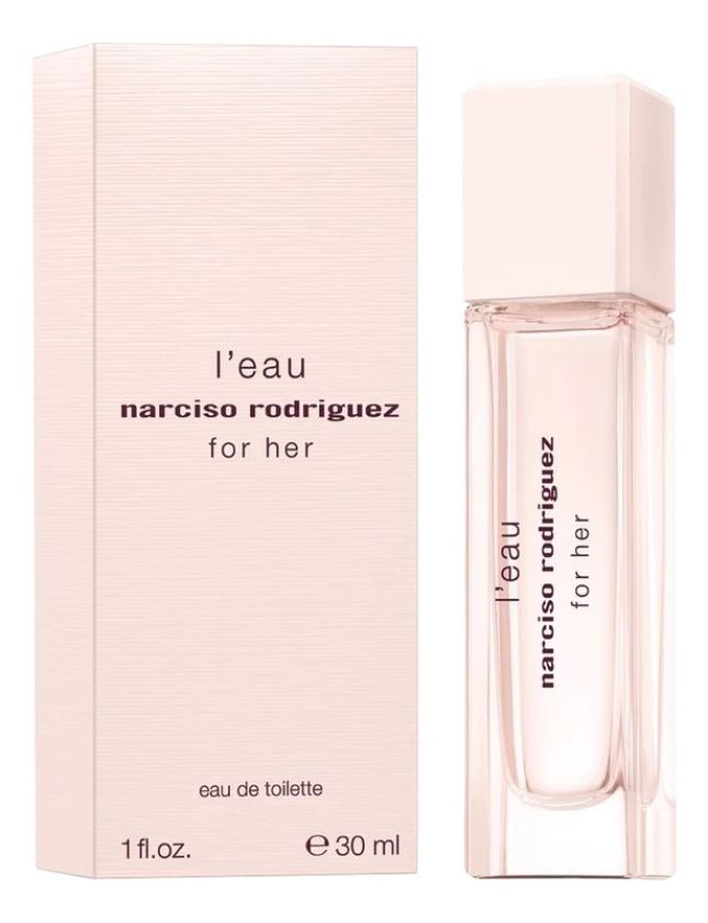 Narciso Rodriguez L'Eau For Her («Нарцисо Родригес. Вода для Нее»). Поистине, этот аромат можно назвать ароматом «с большой буквы». Женский цветочно-древесный, мускусный парфюм был выпущен в 2013 году и стал очередным пополнением коллекции ароматов Narciso Rodriguez. Эта парфюмерная композиция, ломающая представление о традиционных запахах, окутывает цветочной симфонией с изящными древесными и мускусными обертонами.
