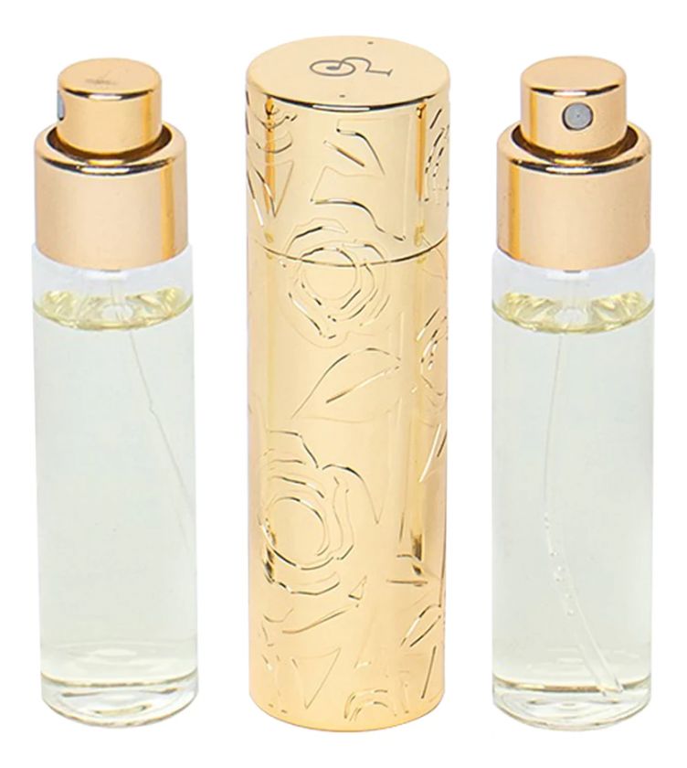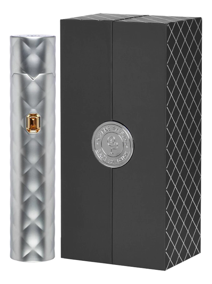 Флакон Orens Parfums Utaki Sacre упрятан в футляр с изысканной гравировкой, изготовленный из полированного серебристого металла и декорирован золотистым кристаллом Swarovski. В футляре находится флакон парфюмерной воды 50 мл. Набор также содержит бархатный мешочек, в котором очень удобно носить флакон с любимым парфюмом в сумочке.