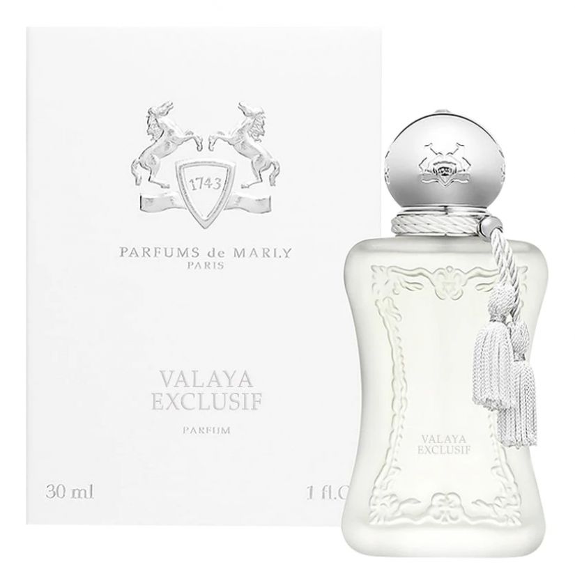 Parfums de Marly Valaya Exclusif — цветочно-древесный женский аромат от Parfums de Marly, вдохновленный чувственностью и изяществом французской придворной моды конца XVIII века. Эта эпоха, характеризующаяся роскошными слоями ткани и восхитительным взаимодействием прозрачности и непрозрачности, отражена не только в композиции аромата, но и в белом матовом флаконе, покрытом нежными цветочными завитками, чья элегантная внешняя часть отражает суть заключенного внутри аромата.