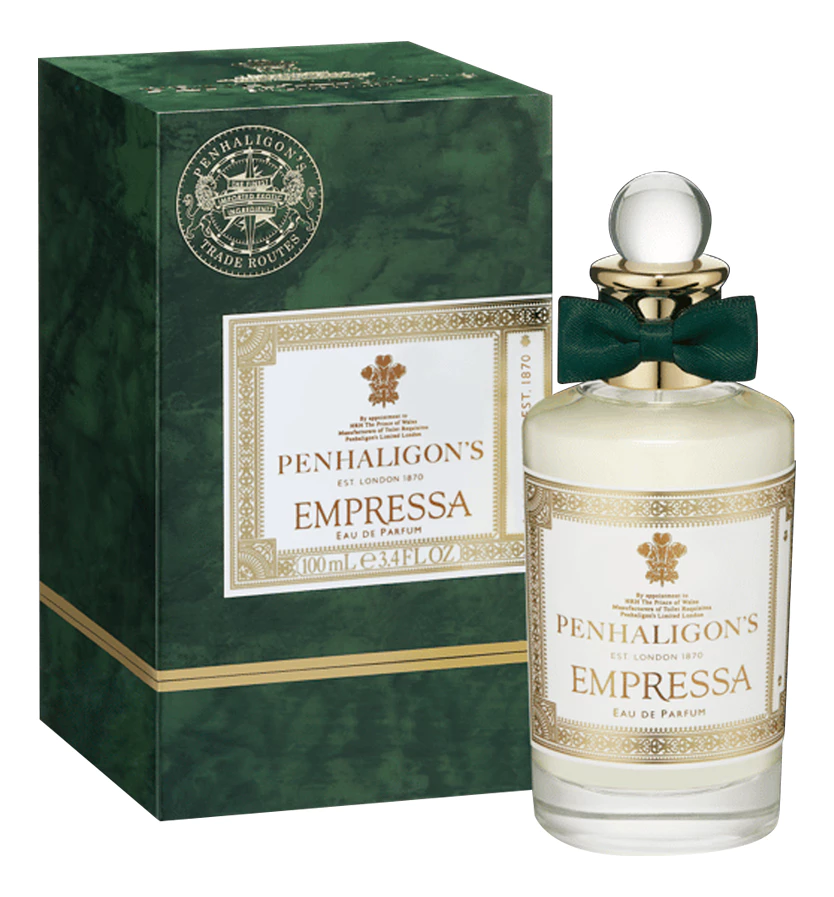 Empressa Eau De Parfum – парфюмерная вода с цветочным древесно-мускусным ароматом для женщин и мужчин, созданная в 2018 году парфюмером Christian Provenzano для парфюмерного бренда нишевых ароматов Penhaligon's. Глубокий, насыщенный и манящий парфюм Empressa Eau De Parfum был вдохновлен роскошью, богатством и разнообразием восточных товаров, которые в 19-ом веке попали на самый большой рынок Лондона, тем самым приобщив требовательных англичан к роскошным восточным фактурам тканей и утонченному аромату восточных душистых пряностей.