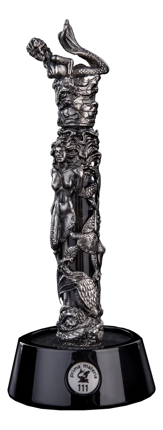 Крышку флакона Prima Materia 111 Mermaids украшает русалочка, сидящая на морском валуне и хитро подмигивающая окружающим.