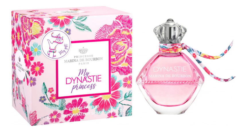 My Dynastie Princess — яркий, дерзкий и самодостаточный женский цветочно-фруктовый аромат, выпущенный в 2020 году французским брендом Princesse Marina de Bourbon. Парфюм пересматривает коды, меняет привычные образы и окрашивает повседневную жизнь в яркие краски. Он приглашает войти в мир молодой девушки сегодняшнего дня — необычной, причудливой и самостоятельной, которая утверждает свой стиль в вихре эмоций и радостного воображения. Быть современной принцессой еще никогда не было так просто...