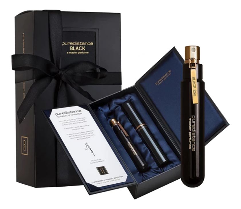 Puredistance Black («Пьюредистанс. Чёрный») – новый аромат, выпущенный в 2013 году. Автором композиции стал парфюмер Antoine Lie. Букет для мужчин и женщин навеян легендами и сказочными историями, вдохновлен концепцией уникального, философского черного цвета.